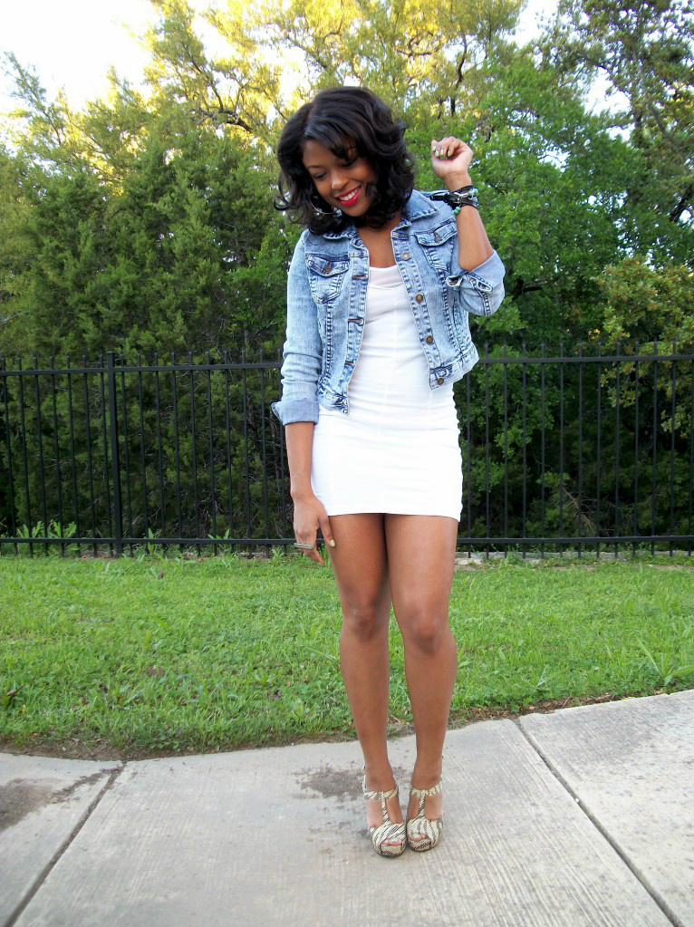 I paired this white number with snakeskin heels and a denim acid wash jacket from Forever 21.